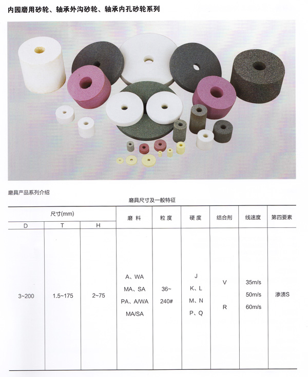 内圆磨用砂轮、轴承外沟砂轮、轴承内孔砂轮系列